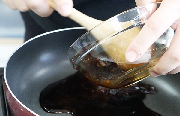 將醬油倒入平底鍋中