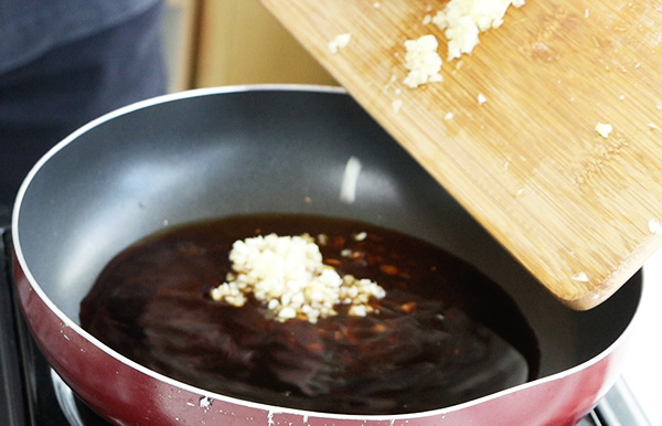 並依序倒入事先準備好的黑糖薑母/原味黑糖、蒜末、味醂、米酒、蜂蜜