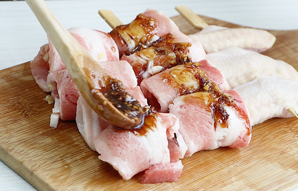 ▼接著把剛剛做好的烤肉醬塗抹在串物上,用刷子可以更均勻喔。