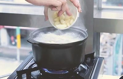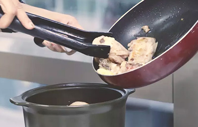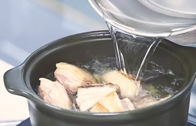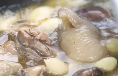 步驟6、將雞腿和蒜頭夾出 放入湯鍋