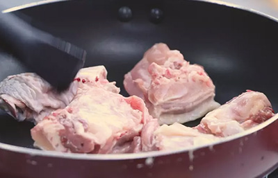 步驟3、將鍋底用雞腿肉稍微上油 將其餘雞腿肉放入鍋中煎