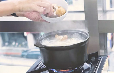 步驟9、放入香菇 放入桂圓紅棗茶磚