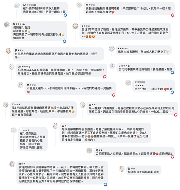 自從品牌創業以來,總會默默地收到許多客人訊息,內容滿是對於糖鼎黑糖的喜歡與滿溢出來的愛,收到訊息的我們就像是交到一位擁有共同喜好的好友般開心雀躍!