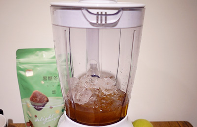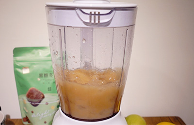 步驟2、準備果汁機,倒入泡好的冬瓜茶