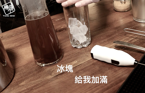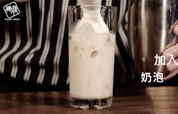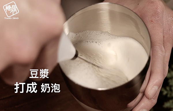 另外倒取一些無糖豆漿,使用奶泡機打至發泡。