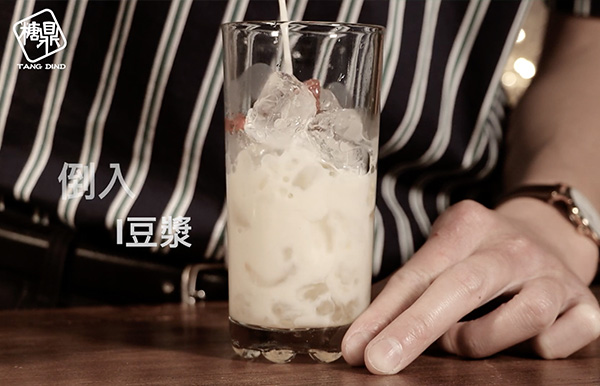 接著倒入事先準備好的無糖豆漿,約六分滿。